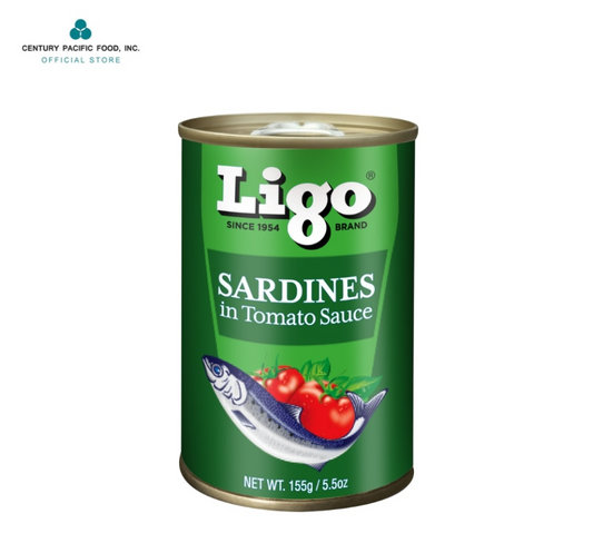 Ligo Sardines in Tomato Sauce 155g (Case of 100pcs) - Rich in Calcium, Protein and Lycopene