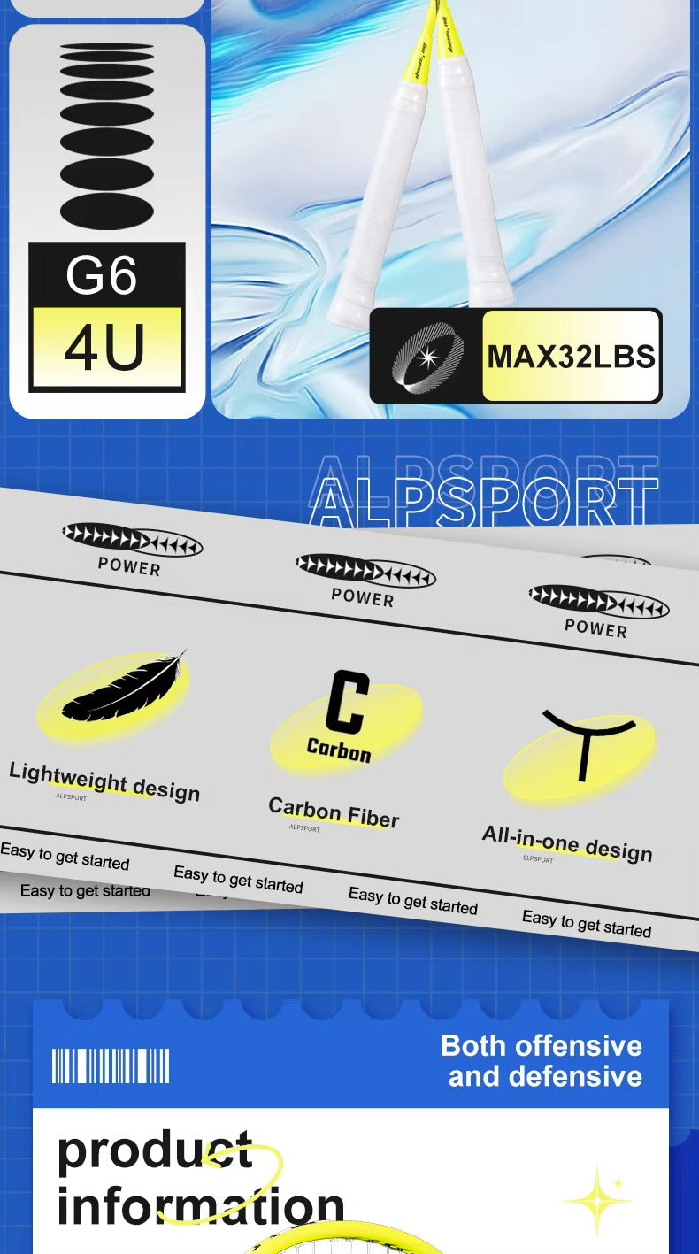 Feature: Big racket area, precision ball control, for both offensive and defensive.