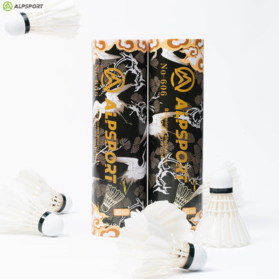 ALPSPORT 6pcs White Goose Feather Shuttlecocks- 606