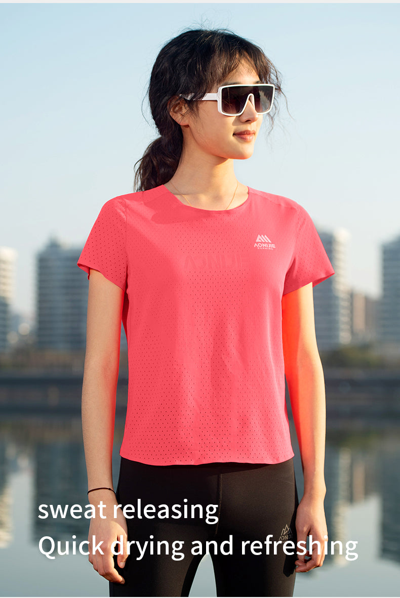 Aonijie FW6191 Sports Quick Drying Short Sleeves T-shirts for Women- PINK
