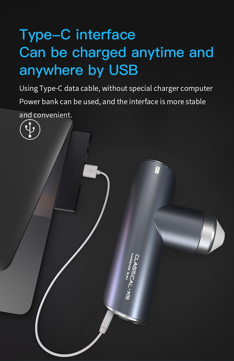 AONIJIE E4411 Handheld Light Massager Deep Tissue Muscle Fascia Gun Electric Neck Back Leg Massage Fascia Gun by USB Charging