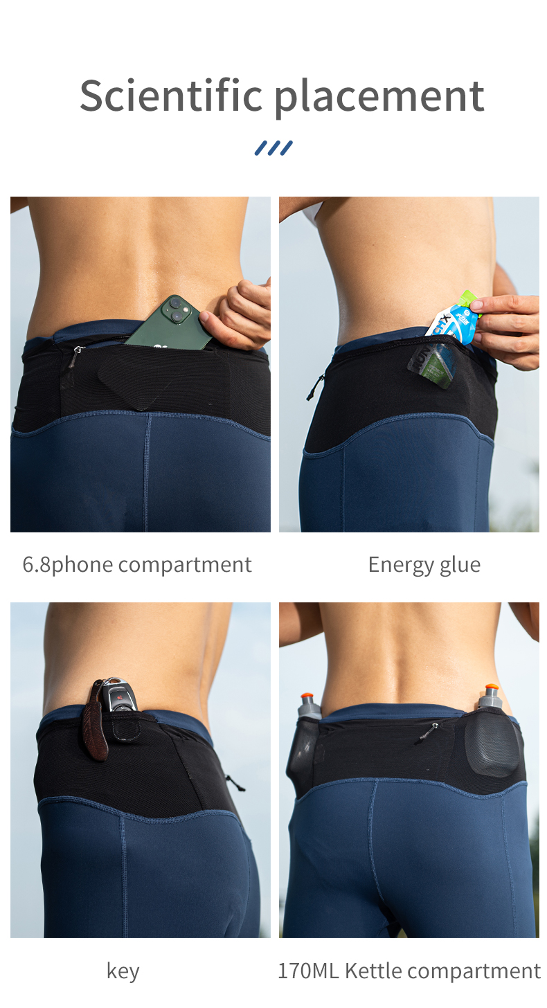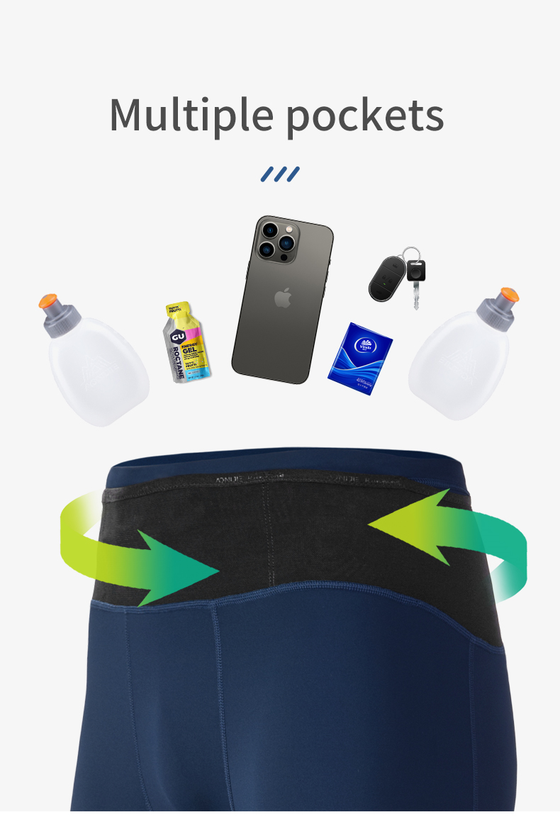Sports compression long pants are made of four - way stretch fabric, ensuring a comfortable wearing experience and unrestricted movement. They feature a multi - pocket design, which can hold items such as phones and energy gels to meet your sports needs. The fabric is elastic and breathable, and there is a drawstring at the waist.