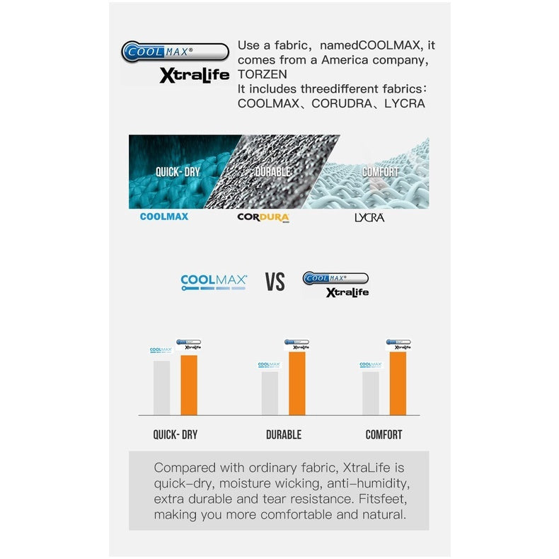 Fabric: 78% coolmax, 18% nylon, 4% lycra