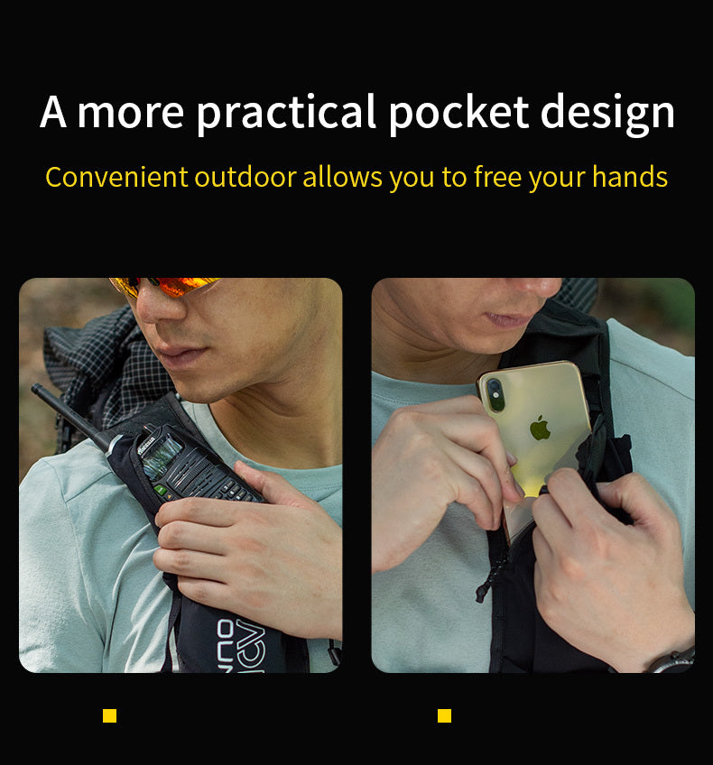 3 YKK zipper pocket,6.8-inch smart-phone, 500ML water bottle storage pocket
