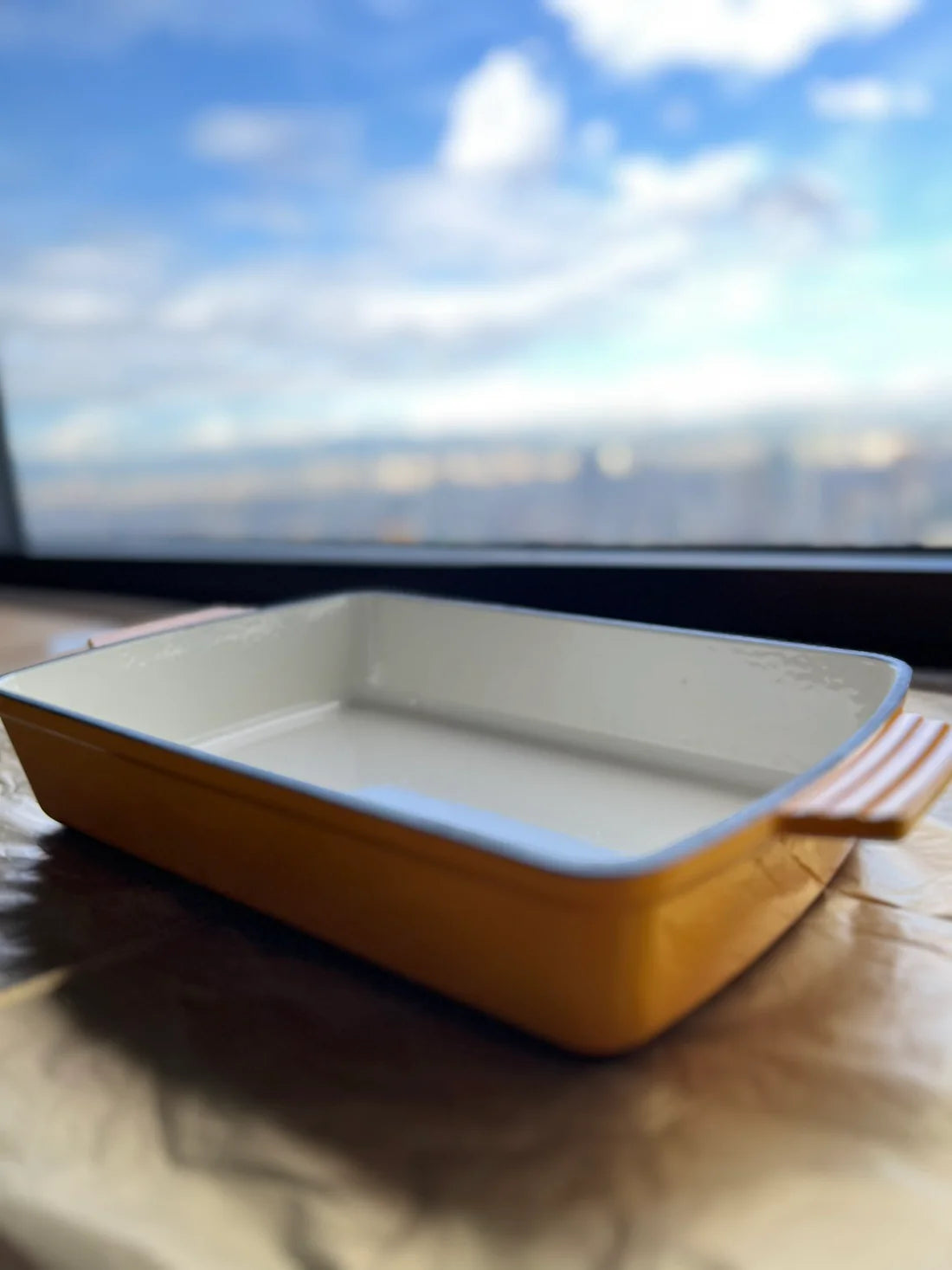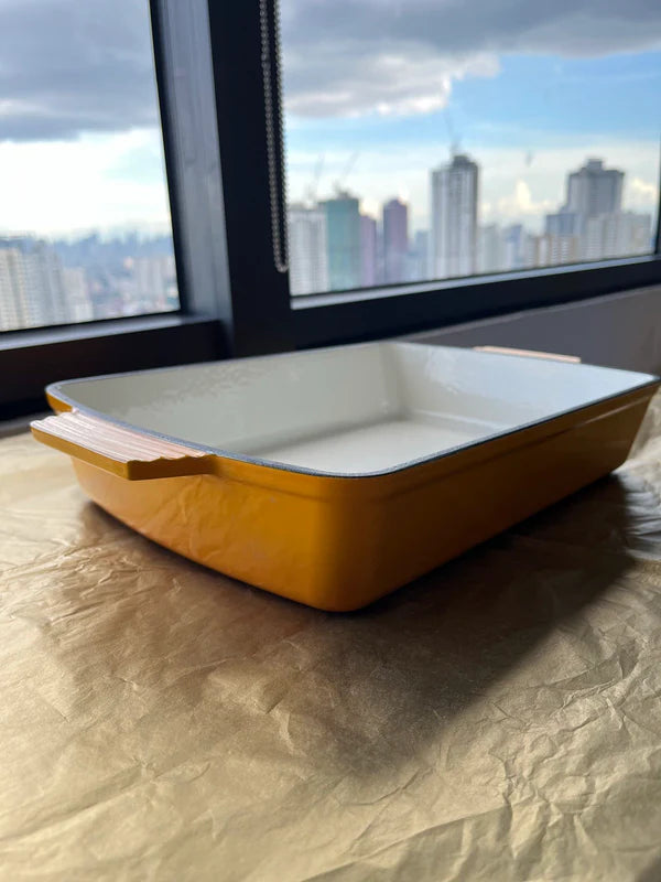 Happiness ENAMELED CAST IRON CASSEROLE DISH - Yellow