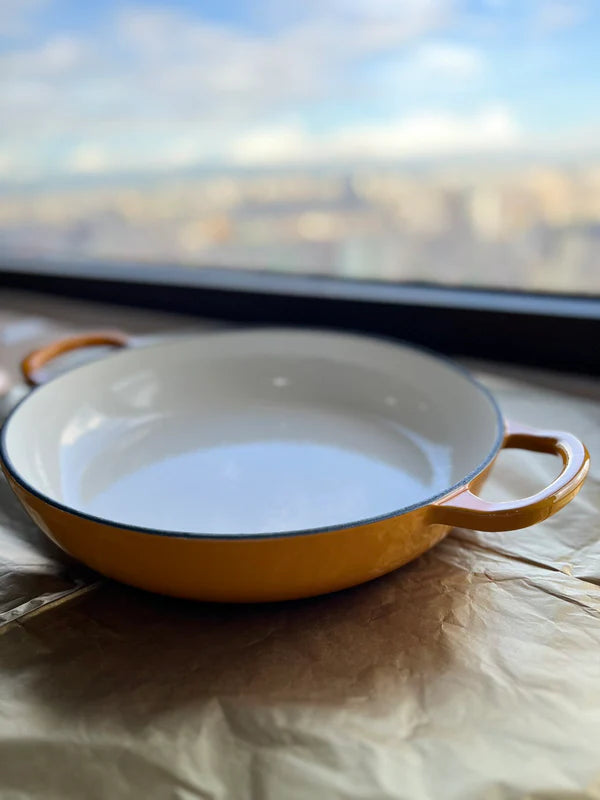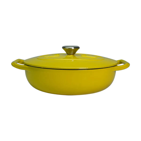 This Happiness Yellow ENAMELED CAST IRON POT is perfect for your cooking needs. With a size of 40 x 30 x 6cm and a weight of 6.2kg. It provides plenty of space for your dishes while being easy to handle. Made of high-quality cast iron, it ensures even cooking and durability. Add a cheerful touch to your kitchen with this stylish pot.