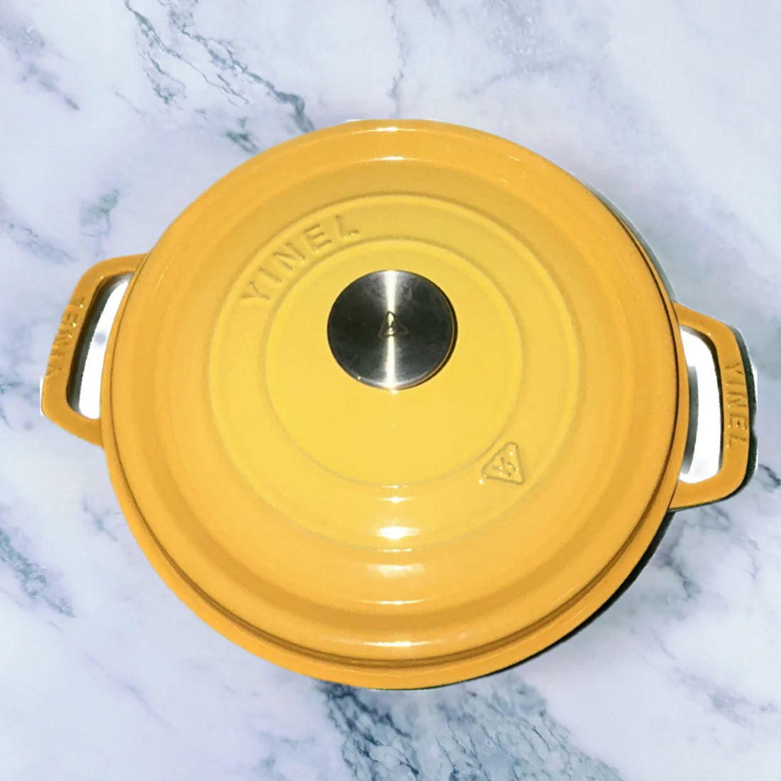 Happiness DUAL HANDLE ENAMELED CAST IRON POT- YELLOW