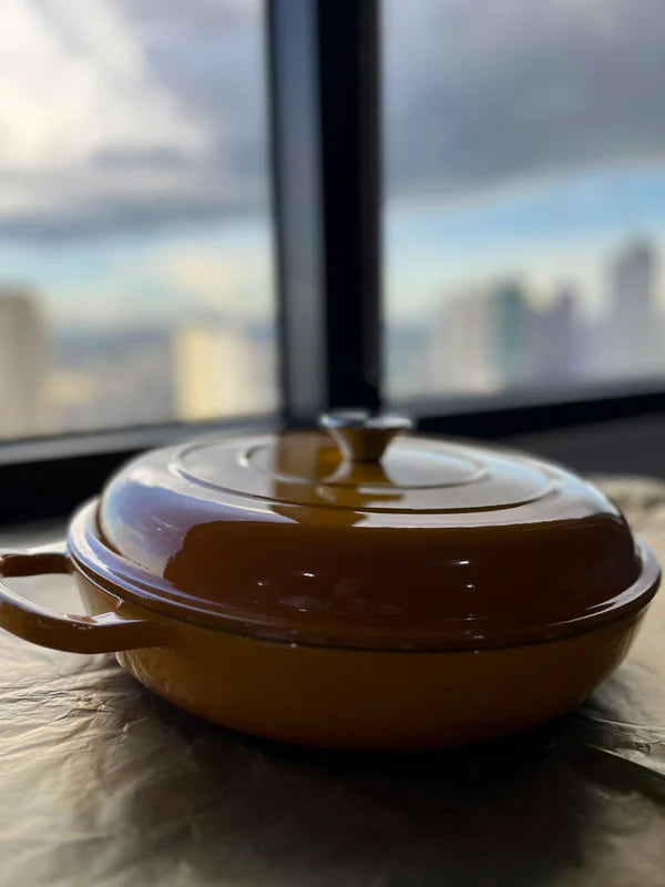 YELLOW ENAMEL CAST IRON POT-35 x 26 x 10.5cm / 4.6kg