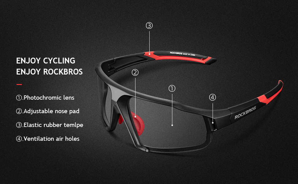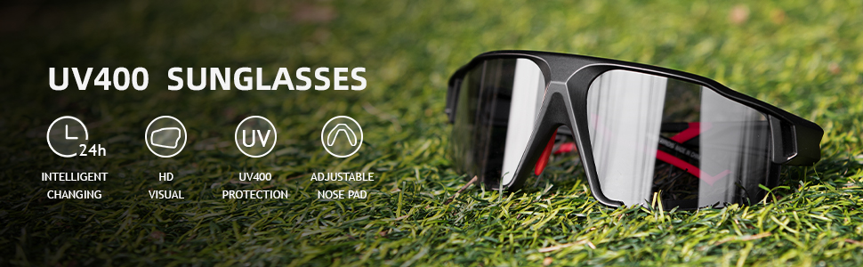 Rockbros PHOTOCHROMIC SPORTS GLASSES Cycling Outdoor UV400 Lens - BLACK