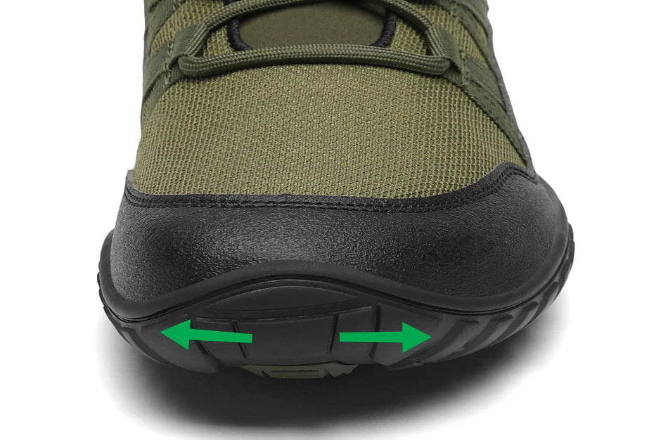 Stylish barefoot hiking shoes, versatile for various outfits, lightweight and flexible, perfect for urban strolls or hiking adventures.