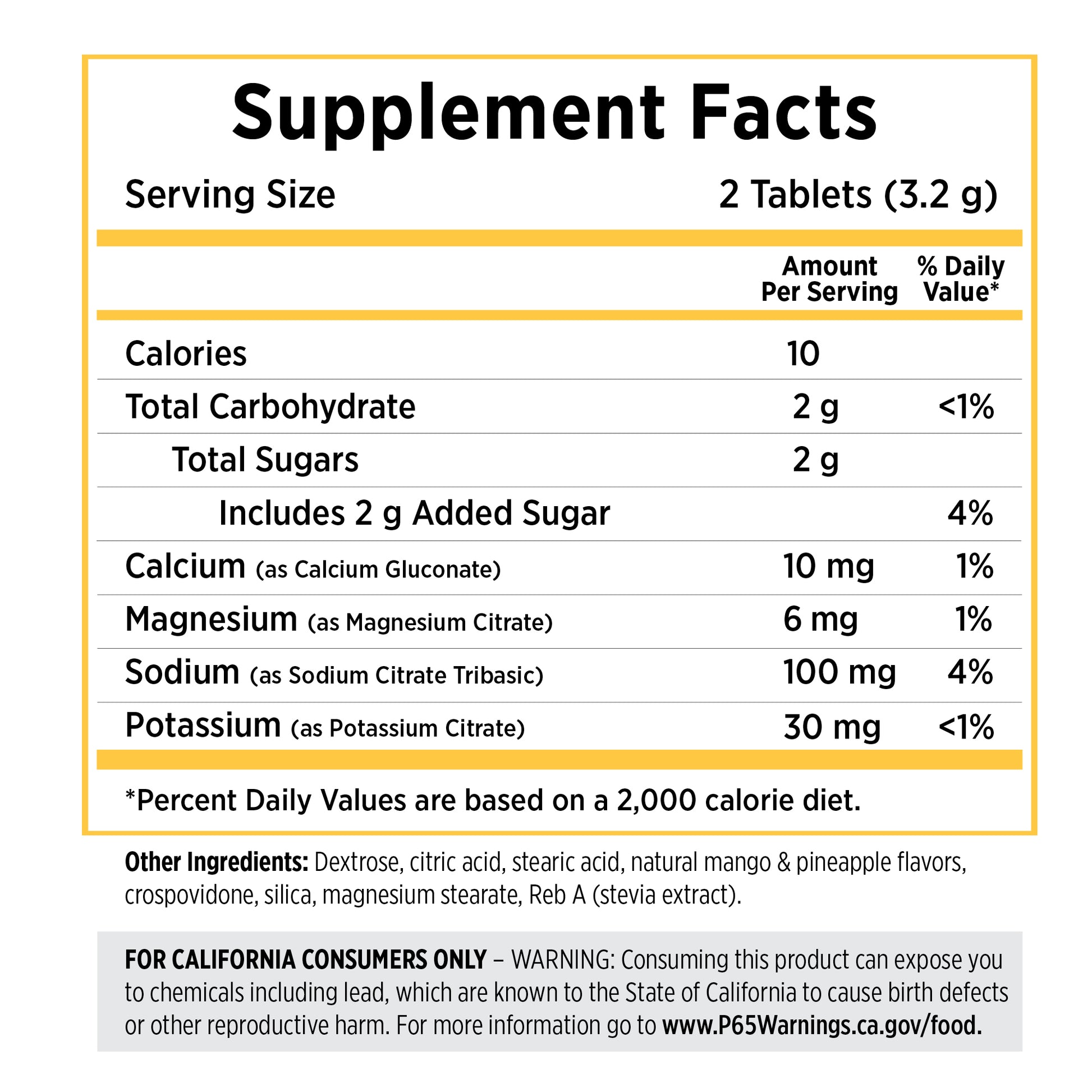 Other ingredients: Dextrose, citric acid, stearic acid, natural mango & pineapple flavors, crospovidone, silica, magnesium stearate, Reb A (stevia leaf extract)