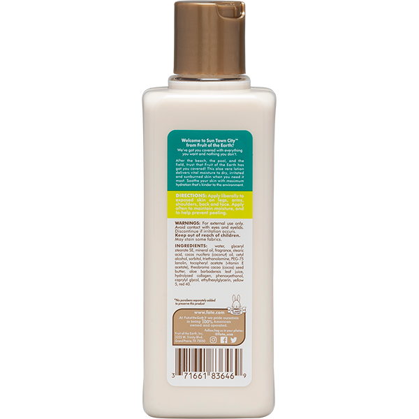 After the beach, the pool, and the field, trust that Fruit of the Earth has got you covered! This aloe vera lotion delivers vital moisture to dry, irritated, and sunburned skin when you need it most. Soothe your skin with maximum hydration that’s kinder to the environment.
