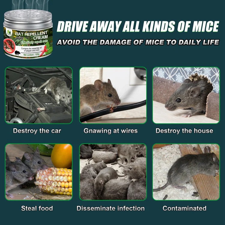 Say goodbye to pesky rodents with our RAT & MOUSE REPELLENT CREAM 120g! Our powerful formula effectively repels mice and rats, keeping them away from your home and belongings. Enjoy a rodent-free environment without harsh chemicals. Say yes to a pest-free life!